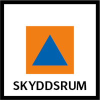 Reflekterande skylt för skyddsrum. Uppfyller Myndigheten för samhällsskydd och beredskaps (MSB) krav.