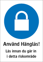 Påbudsskylt - AFS - Använd hänglås - Lås innan du går in i detta riskområde