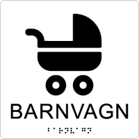 Taktil/Braille symbolskylt, BARNVAGN, vit/svart