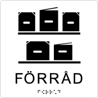 Taktil/Braille symbolskylt, FÖRRÅD, vit/svart